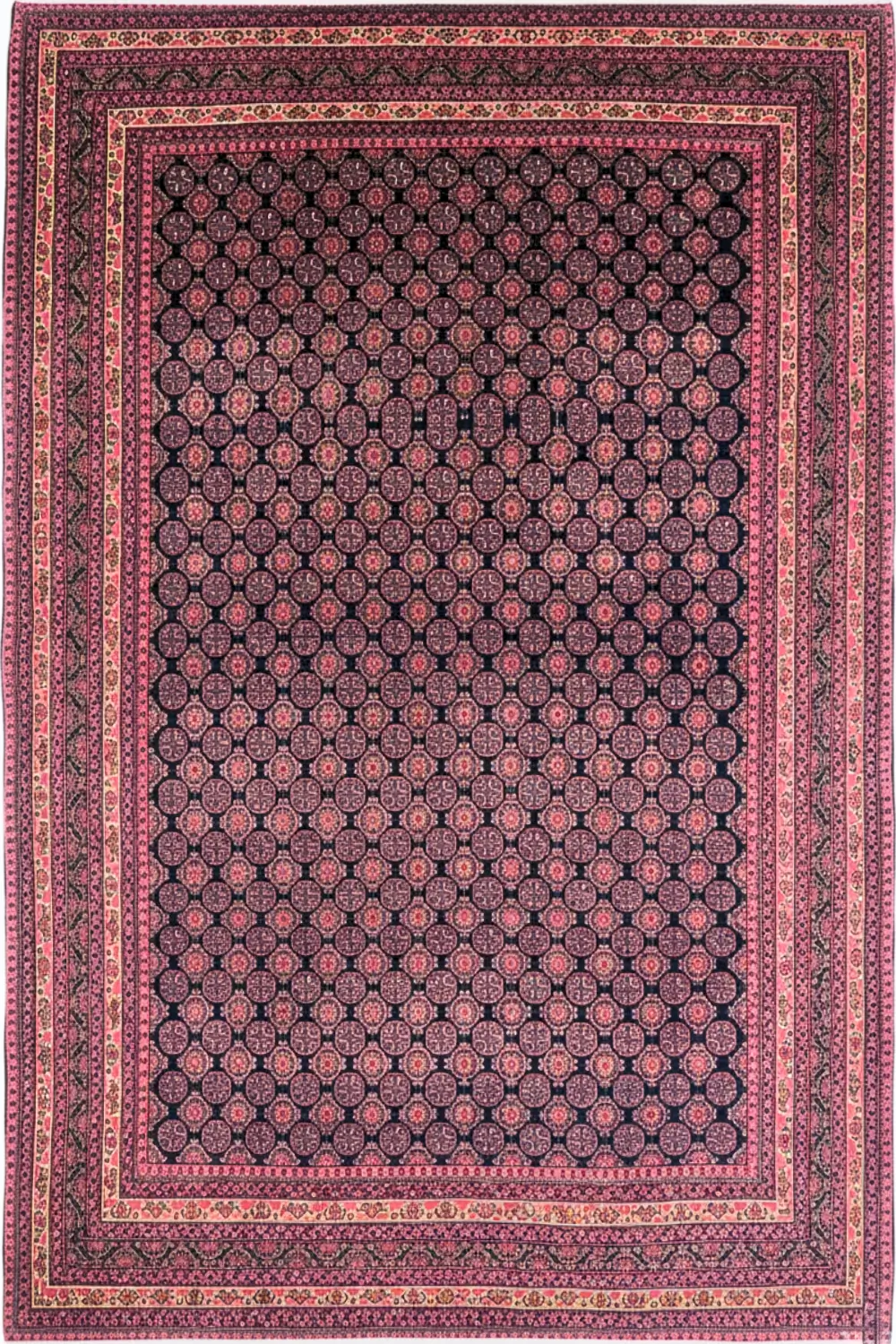 - The Mori Bokhara design often features a central colour with small motifs and intricate borders.