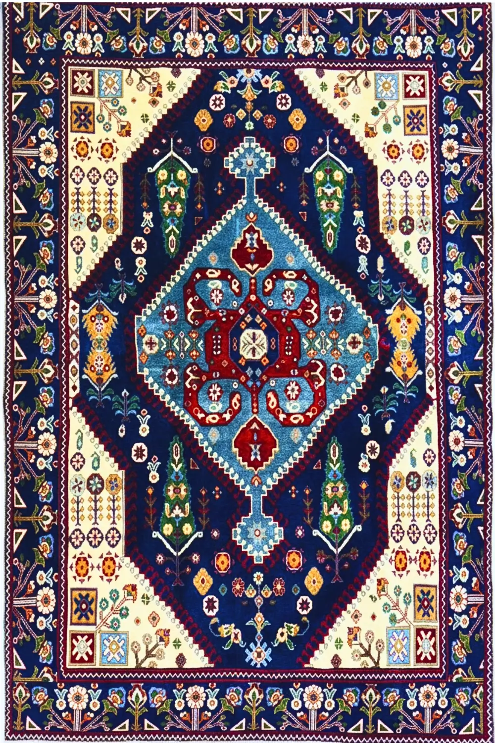 - This beautiful rug, measuring 5′ x 7′ in foot and 153 x 214 cm in centimetre, has a renowned Caucasian and Medallion design known for its intricate detailing.