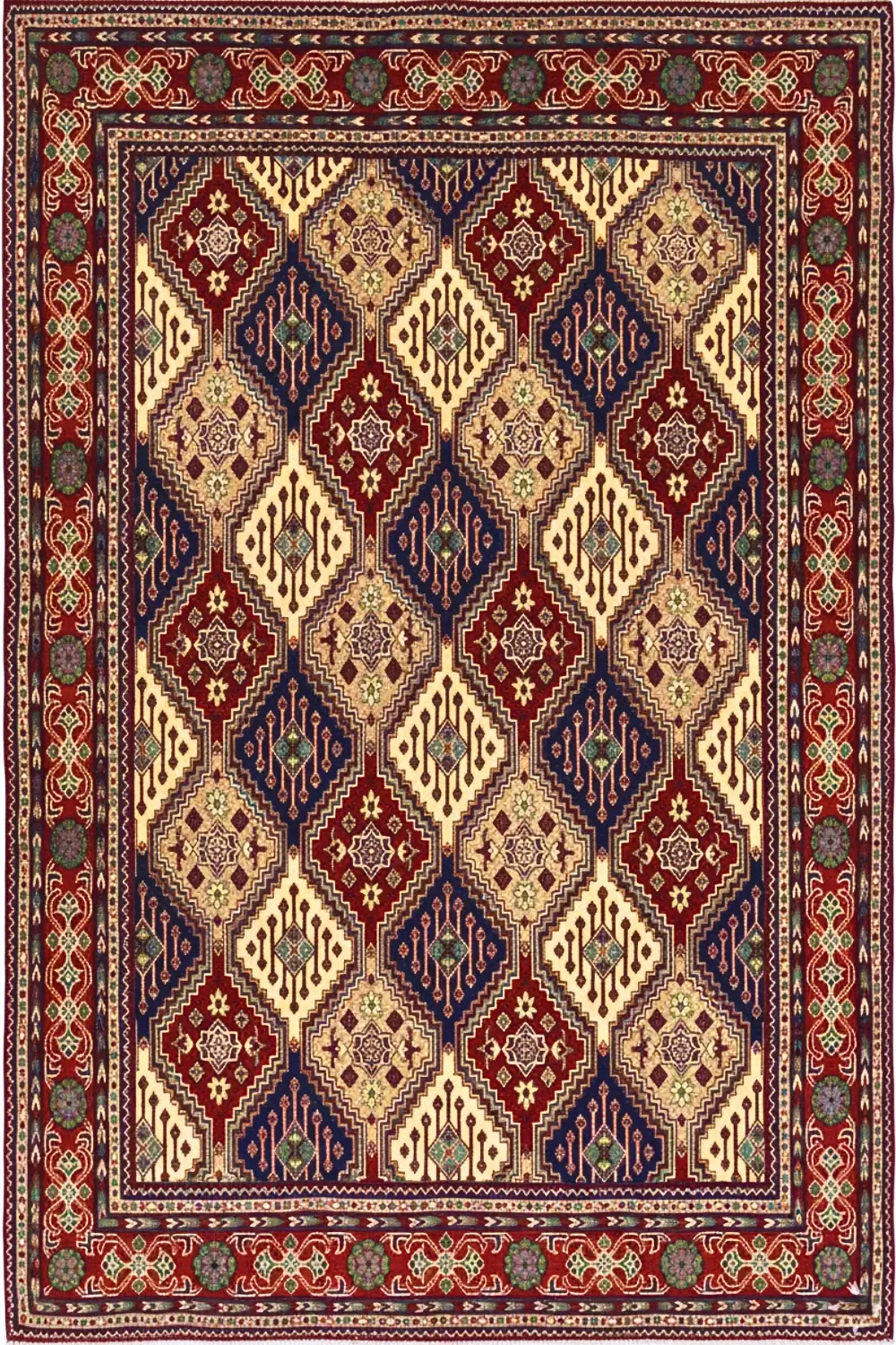 - The Diagonal Boxes Afghani Handmade Rug is skilfully made from 100% pure wool by expert weavers.