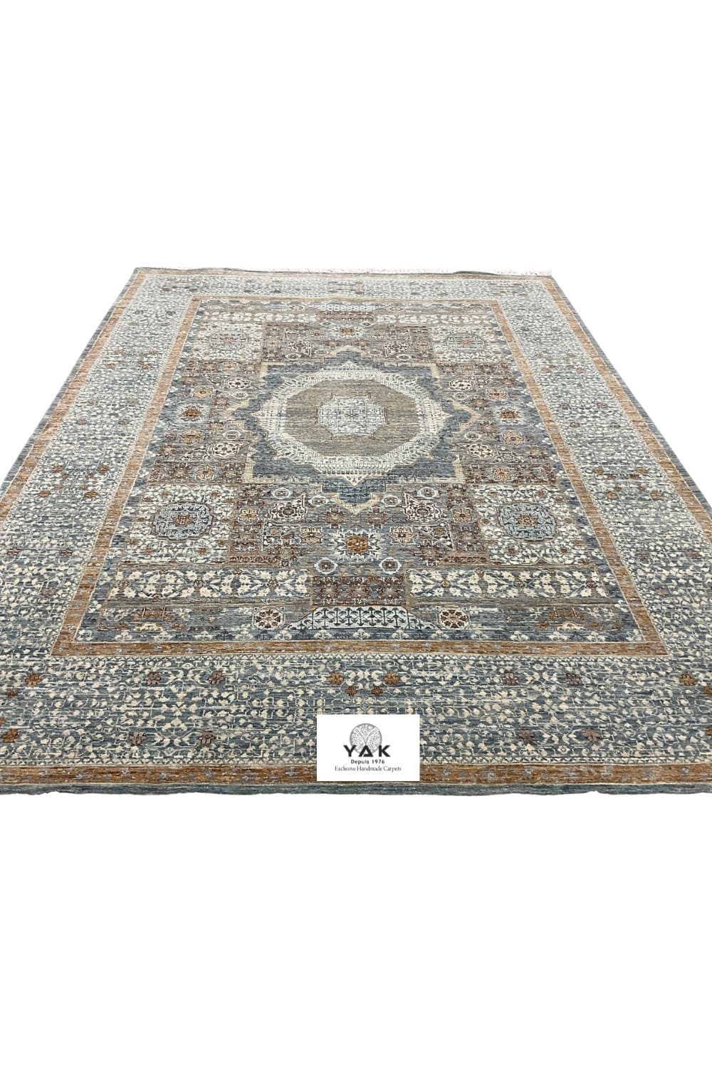 - This is a gorgeous handknotted oushak carpet with a brown-beige base, which is very lively and illuminating.